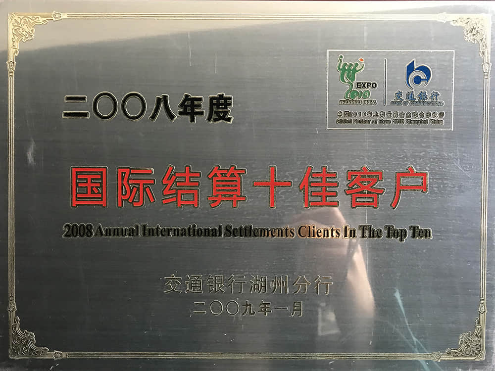 • 2008年度國際結算十佳客戶(交行)