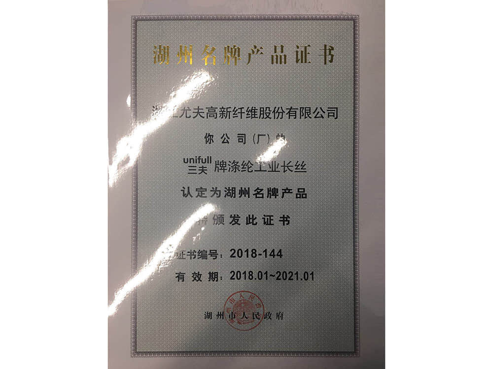 • 湖州名牌產(chǎn)品證書2018