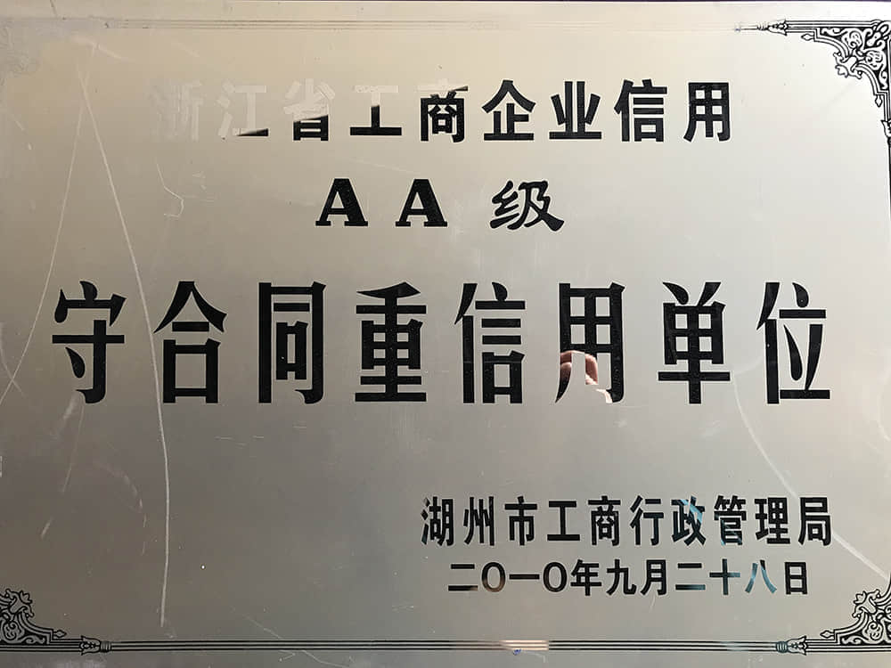 • 2010浙江省工商企業(yè)信用AA級守合同重信用單位