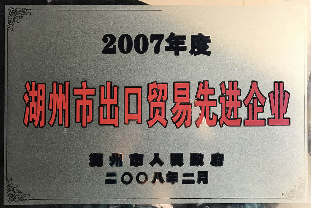 • 2007年度湖州市出口貿(mào)易先進(jìn)企業(yè)